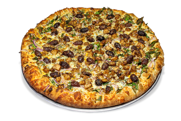 Put some pizza gold on your podium with The Olympian. Featuring extra virgin olive oil, balsamic glaze chicken, spinach, kalamata olives, red onions and oregano topped with feta and house-blend cheese.