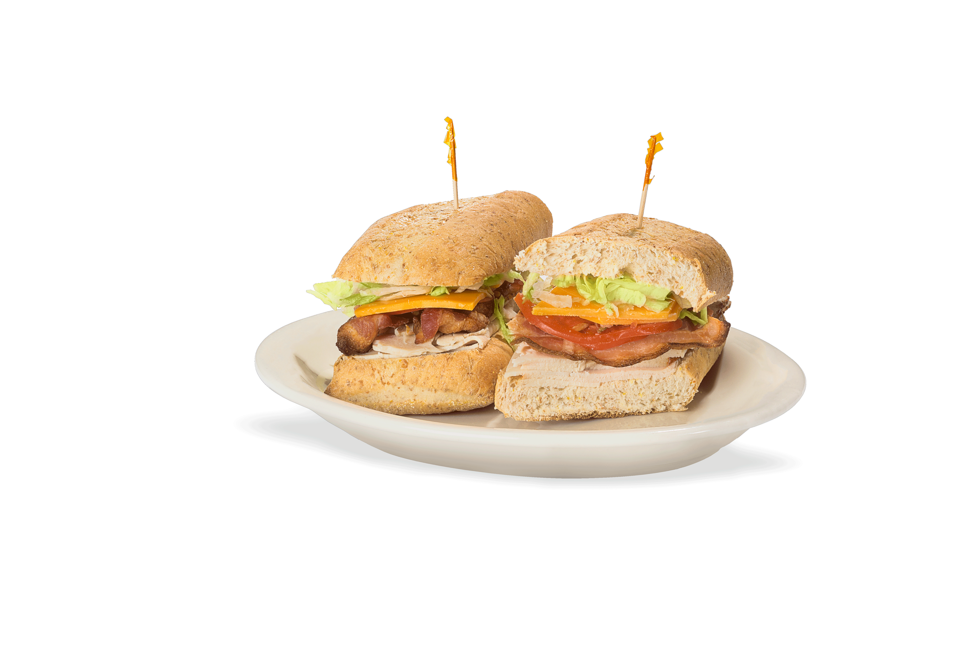 Hot or cold, you decide! Turkey, cheddar cheese, crispy bacon, lettuce, and tomato. Served with a side of mayo.