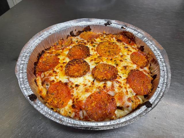 Cavatappi noodles covered in classic sauce, mozzarella, pepperoni and our parmesan parsley blend.