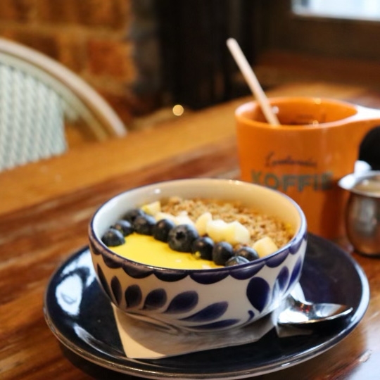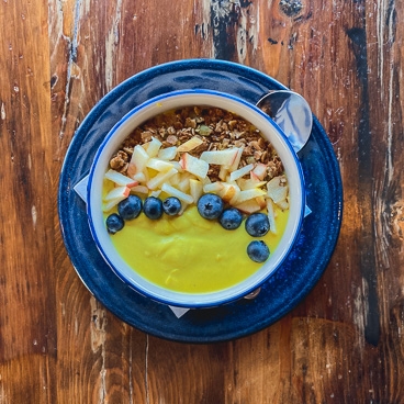 Golden chai Greek yogurt, maple pumpkin seed granola, blueberries, honey crisp apple, roasted pecans