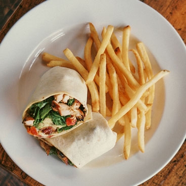Chicken, avocado, bacon, roasted tomatoes, organic arugula, blackened garlic ranch aioli, flour tortilla