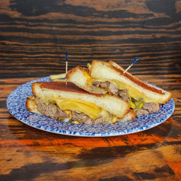 Shredded slow-cooked beef, smoked gouda, American cheese, caramelized onions, sliced jalapeño, fluffy parmesan crusted challah bread