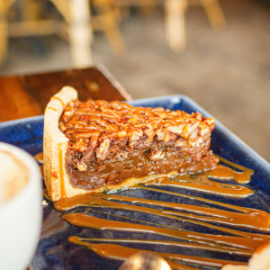 Deep dish crust, Gulden Draak ale, pecans, vanilla ice cream