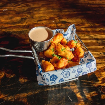 Hand-breaded local Decatur Dairy Muenster cheese curds, sriracha ranch