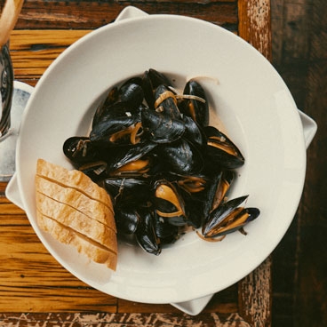 Fresh Prince Edward Island mussels, white wine, garlic, cream, toasted baguette