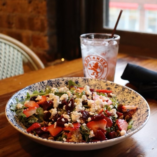 Organic arugula, quinoa blend, strawberries, roasted beets, sheep's milk feta, spiced pepitas, blackberry balsamic vinaigrette